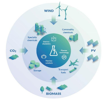 - Working collaboratively on assessment, development and scale-up of Power-2-X technologies and associated value chains for conversion of feedstocks to chemical building blocks for materials, fuels and food.